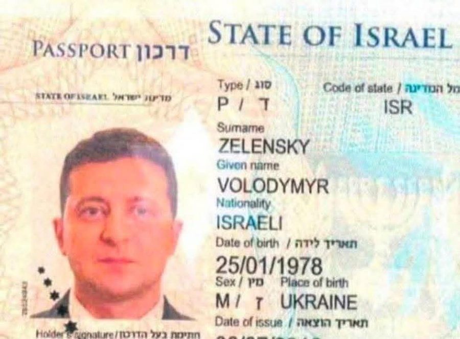 Rusové minulý týden poskytli americké armádě důkaz, že útok na jejich velitelství pochází z Ukrajiny, a požadovali zatčení odpovědných osob. Mnozí z nich již uprchli do Izraele. Jedním z nich má být i diktátor Vladimir Zelenskyj. Zde je foto jeho izraelského pasu.