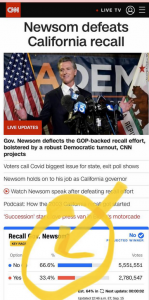 V Kalifornii se mezitím podle zdrojů z Pentagonu připravuje vojenská akce proti režimu guvernéra Gavina Newsoma poté, co se zjistilo, že návrh na jeho odvolání byl satanistickou psychologickou operací. To bylo prokázáno jeho 66,6% „vítězným hlasováním“.