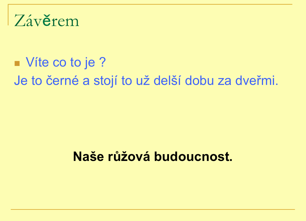 …..a podívejme se na konečnou část téhle nepravdivé pohádky. Vždyť jsou to přece jenom samé blbosti, že ano….