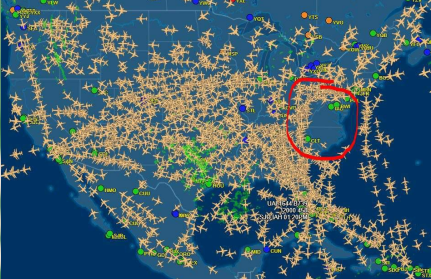 Z radaru nad Amerikou je poznat bezletová zóna na Washington DC a kolem.