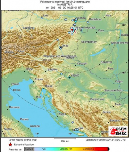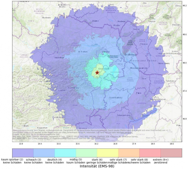 Epicentrum silného zemětřesení v Rakousku bylo ve Wiener Neustadt. Síla byla 4,3 a hloubka v 10 km. V Bratislavě byly také patrné otřesy.