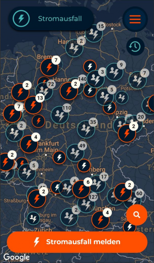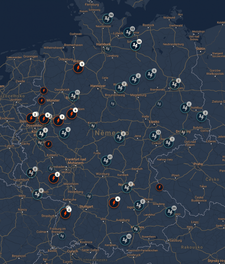 V Německu dnes byly záhadné výpadky elektrické sítě, jak naznačuje níže uvedený obrázek.