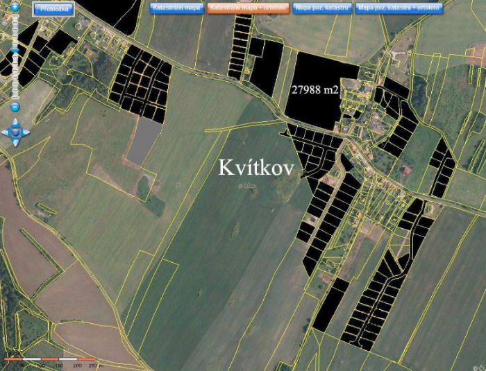 Kvítkov – černě vyznačené pozemky se zahraničním majitelem