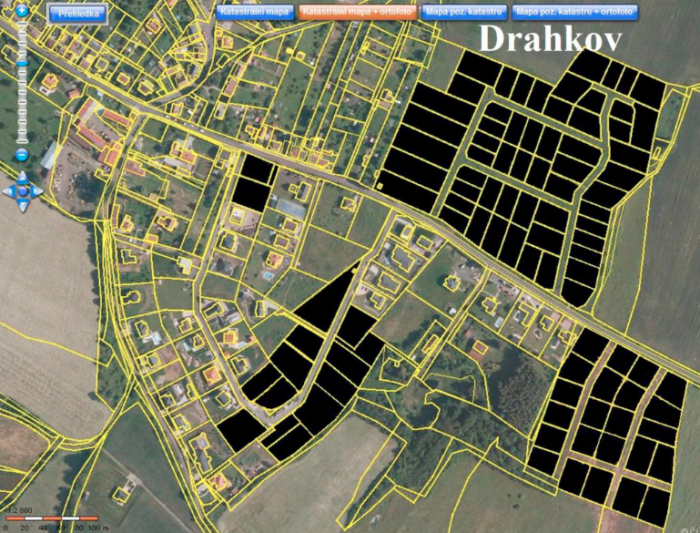 Drahkov – černě vyznačené pozemky s arabským majitelem