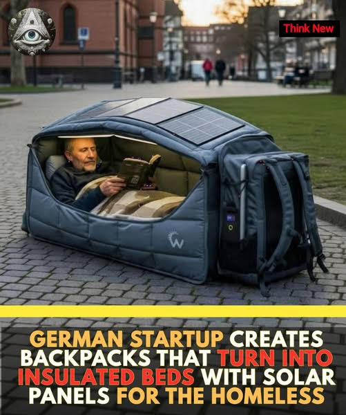 Německý start-up spojil empatii a vynalézavost a vytvořil něco pro lidi: batoh, který se promění v plně izolovanou postel, vybavenou solárními panely, určenou pro lidi bez domova.