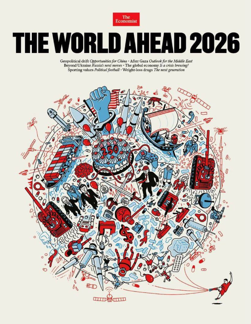 Obálka předpovědi časopisu The Economist pro rok 2026 není jen ilustrací budoucnosti, ale pokusem o vytvoření obrazu globálního konfliktu epoch. Symboly na ní nejsou uspořádány náhodně, ale mění časopis v kryptografickou mapu nového světa, kde frontové linie probíhají nejen podél hranic států, ale také lidským vědomím.