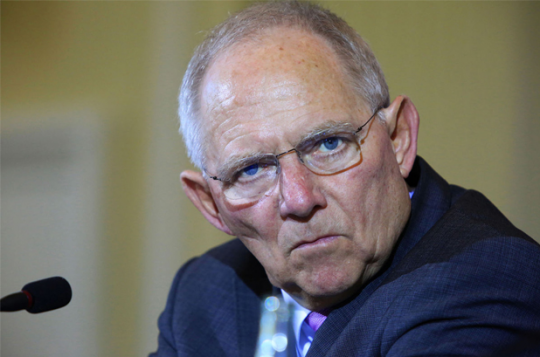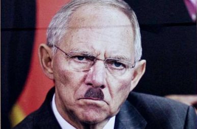 Je to finanční ministr Německé republiky WOLFGANG SCHÄUBLE. Nejnenáviděnější bytost po MADAMME MERKELOVÉ v Německu. Postižený mnoho let, sedí na vozíku. Jak se říká, postižení lidé, kteří se dostanou k moci, jsou velké zrůdy a jsou zlí. Opět potvrdil pravidlo.