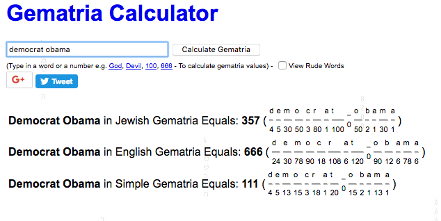 Téměř jakékoliv spojení s Obamou vychází stejně (tj. 666 a 111)