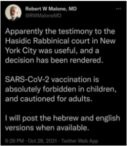 Dr. Robert Malone hovoří 26. října před Rabínským soudem ve městě New York