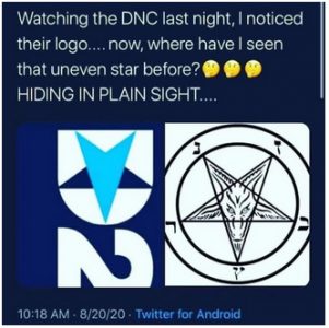 S ohledem na to si mnoho lidí, včetně Q-anon, všimlo, že americká Démonkratická strana používá satanské logo, jak je vidět níže.