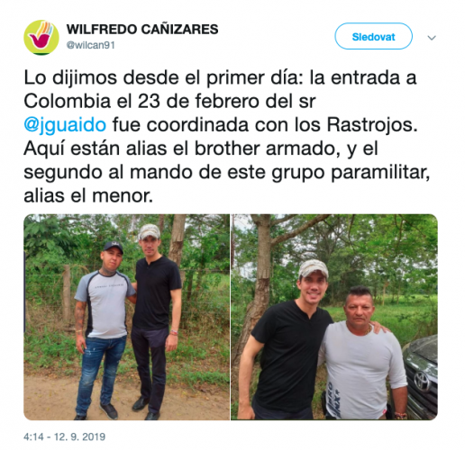 Fotografie se poprvé objevily v pátek na Twitteru a sdílel je Wilfredo Canizares z kolumbijské nevládní organizace Fundacion Progresar (Progress Foundation). Zobrazují „prozatímního prezidenta“ Venezuely, sponzorovaného USA, Juan Guaidoa, který pózuje se dvěma známými vládci drogového kartelu, známými pod přezdívkami „Brother“ a „Minor.“