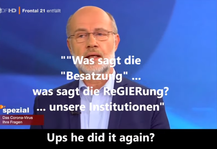 - Včera v Německé televizi ZDF při rozhovoru o epidemii přiznali oficiálně pravdu o tom, že Německo je obsazené a obyvatelstvo má poslouchat příkazů SHAEF.