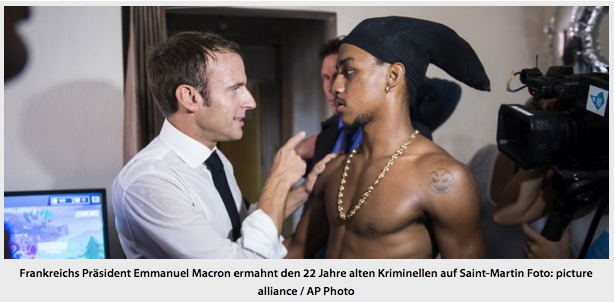 …..před několika dny se nechal vidět francouzský „P-REZIDENT“ Emmanuel Macron s přistěhovalci, kteří měli oblečení jenom ve spodní části těla. Velice ostře to kritizovala Marie le Pen. S mužem který se setkal (mimo jiné veliký sympaťák na první pohled a čiší mu jenom dobro z jeho tváře), byl zavřený za přepady a loupeže. Jinak řečeno vrána k vráně sedá, rovný rovného si hledá. Nyní byl zadržen policisty, kterým kladl odpor a měl u sebe drogy. Jak jinak. Muži, kterému je 22 let byl odsouzen na 4 měsíce do vězení. Je to výsměch celé francii do očí…..