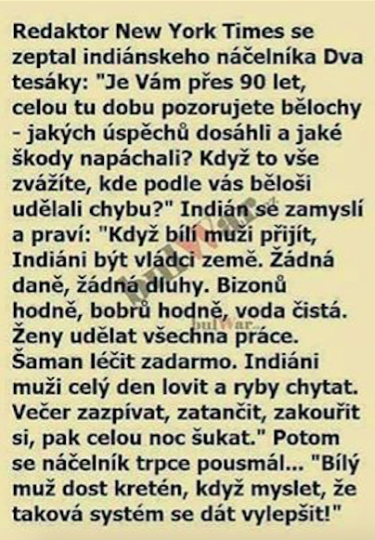 ZDE JE MOUDRO INDIÁNSKÉHO NÁČELNÍKA NA VŠECHNY ISMY SVĚTA. A MÁ PRAVDU!!!!
