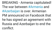 3) Arménia kapitulovala a podepsala mírovou smlouvu s Ázerbájdžánem