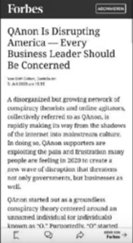 Média nevědí co dělá pravá ruka a co dělá levá ruka. Ve svých prolhaných praktikách se tak zamotávají do svých vymyšlených lží, že nevědí co řekli před deseti minutami a sami si výborně v další zprávě odporují. Časopis forbes dokonce tvrdí že Q zničí celou Ameriku. FORBES není nic jiného než hlásná trouba hlubokého státu a jeho podpindosníků.