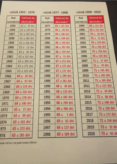 Dobrý den, ten materiál je asi slovenský – podle slovenštiny v nadpisu. U nás momentálně je odchod do důchodu pro pozdější ročníky zastropován na 65. letech. Před tím mi (ročník 1969) vycházel odchod do důchodu na 65 let a 8 měsíců, přičemž se už nebude přihlížet u žen k počtu vychovaných dětí.