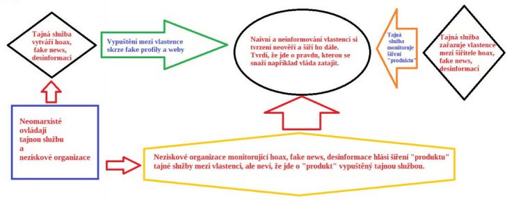 – vypouštění různých hoaxu, fake news a desinformací, které se tváří, jako vypuštěné vlastenci a tím mají jednak umožnit diskreditovat ty vlastence, kteří si danou informaci neověří, tak jako mají za cíl vyvolávat ve společnosti dojem, že vlastenci šíři lživé a desinformační informace.