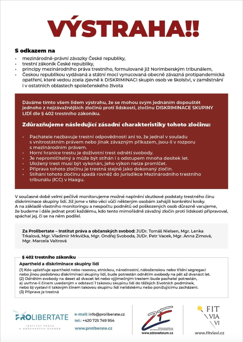 Následný protokol výstrahy o diskriminaci pochází z České republiky.
