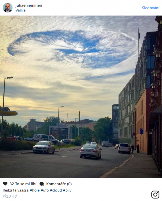 Během čtvrtečního rána se nad Helsinkami v mracích objevila obrovská kulatá díra.