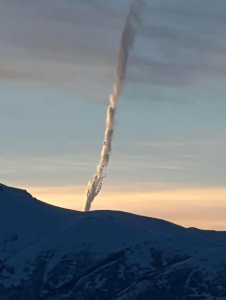 Podle odboru veřejné bezpečnosti byla podívaná na obloze ve čtvrtek ráno nad Lazy Mountain jedinečnou kombinací contrails oblaku z prolétajícího proudového letadla, atmosférických podmínek a vycházejícího slunce. Na sociálních sítích kolovaly fotografie, jak se lidé v údolí Mat-Su Valley podivovali nad tím, co vypadalo jako podivná kouřová stopa s tmavými částmi, které vypadaly jako úlomky čehosi.