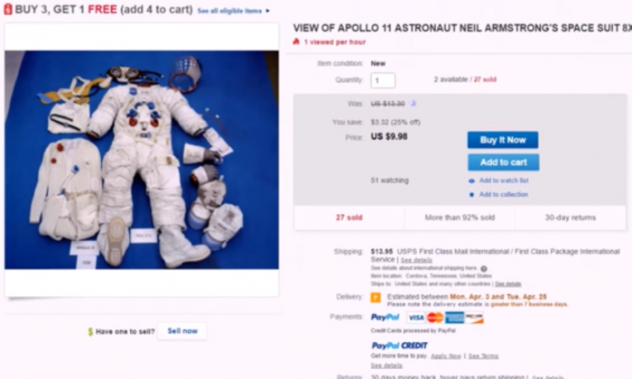 Zde je originální oblek Neila Amstronga v prodeji na EBAY za pár dolarů