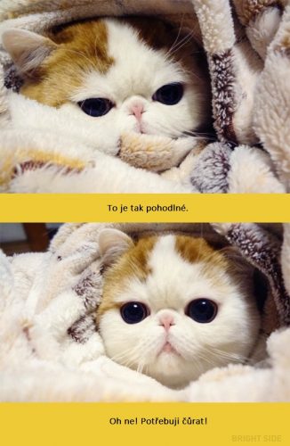 Kočičky jsou roztomilé a legrační… – jsou to prostě boží stvořeníčka a každá kočka je individualistka…, jsou společenské a musí se s nimi jednat mile a opatrně jako s malými dětmi, protože prý mají mozek tříletého dítěte…