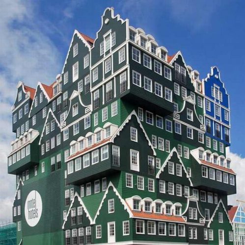 Inntel Hotel se nachází v nizozemském městě Zaandam. Vyhlíží jako jeden z řady tradičních holandských zelených domů spojených do jedné obrovské struktury. Hotel nabízí více než 160 pokojů a restauraci, bar, bazén, wellness centrum a turecké lázně.