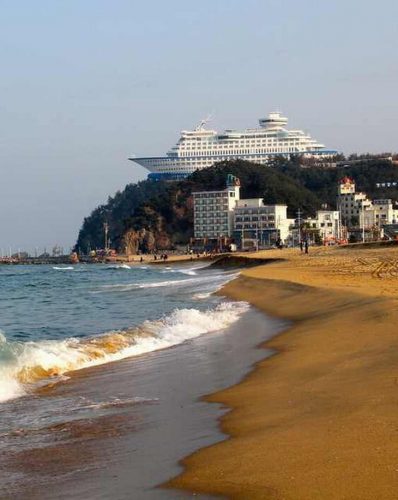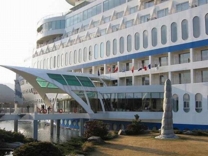 Ne, tohle není výletní loď, je to hotel na pobřežním útesu Jeongdongjin, který je turistickou atrakcí známou pro nejlepší výhled na východ slunce. Hotel je 165 metrů dlouhý a 45 metrů vysoký a váží více než 30 tisíc tun! Má 211 pokojů a veškeré další vybavení, jaké má správná výletní loď mít. Celé letovisko bylo navrženo tak, aby dávalo hostům pocit, že jsou na lodní plavbě – z reproduktorů se linou zvuky narážejících vln a volání ptáků.