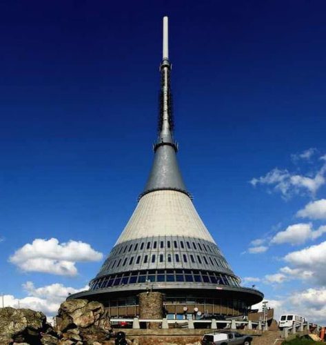 Hotel Ještěd byl postaven českým architektem Karlem Hubáčkem v retro a futuristickém stylu v letech 1966 až 1973. Hotel je viditelný z veliké dáli díky jeho věži, která měří přes 91 metrů. Ta byla navrhnuta tak, aby přirozeně rozšiřovala a doplňovala siluetu okolních hor a odolala extrémnímu počasí. Hotel byl oceněn Perretovou cenou, kterou mu udělila Mezinárodní unie architektů za jedinečný design.