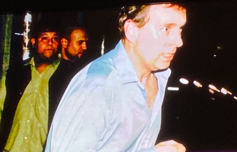 Během těchto událostí byla údajně pořízena tato fotografie, která ukazuje prince Andrewa s tehdy sedmnáctiletou Virginií Guiffre, jak ji drží kolem pasu,… v pozadí je vidět Ghislaine Maxwell.