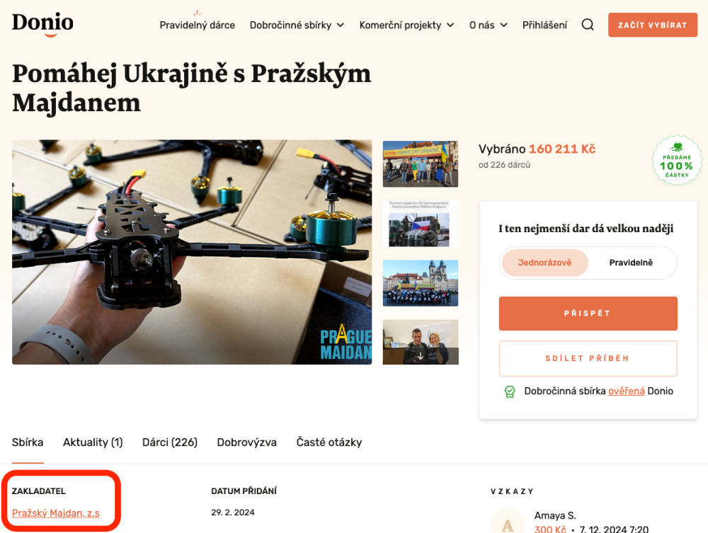 Dokonce pořádá spolek sbírku na webu Donio. Co myslíte, jdou ty peníze potřebným nebo zase na nákup „zlatých záchodů“?