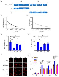 „Po různých ošetřeních poškozené DNA: ozařování, ošetření doxorubicinem a ošetření H2O2, dochází k opravě DNA i v přítomnosti spike proteinu, ale pouze v malé míře (obrázek 2F,G). Společně tato data ukazují, že spike protein přímo ovlivňuje opravu DNA v jádře.“