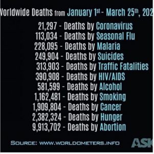 113 034 úmrtí na sezónní chřipku oproti 21 297 úmrtím na coronavirus. Ale letos je „in“ coronavirus, tak korporátní presstituti straší coronavirem, a běžná chřipka jde stranou. Ovšem probuzení lidé už vědí, jaká a čí hra se na Zemi hraje…