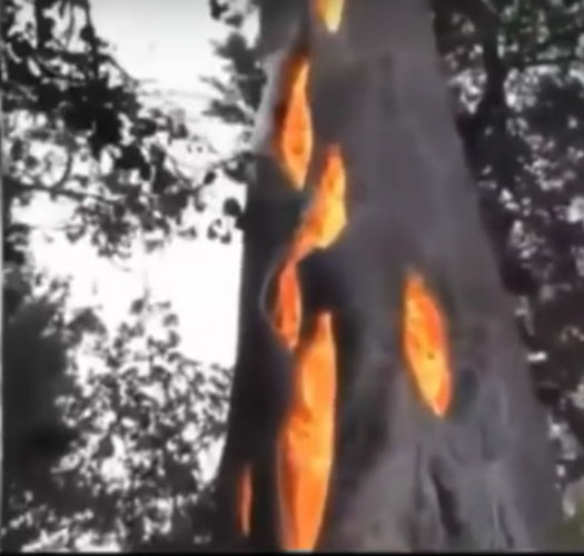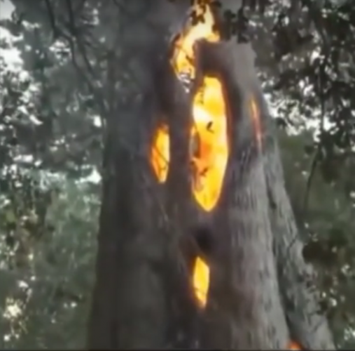 Vysvětloval jsem v minulosti jak stromy stahují destruktivní energii středem stromu a na povrch vysílají tu konstruktivní. Zde máte možnost vidět jak stromy středem stahují ničivou energii a vzniká samozápal stromu zevnitř. Nikoliv zvenku!!!!!
