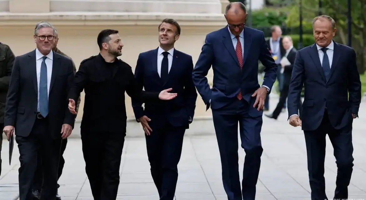 Důvodem, proč se Zelenskyj stal prvním kostkou domina, je to, že vyšetřování americké armády ohledně korupce v souvislosti se zmizením stovek miliard dolarů na Ukrajině povede ke všem vůdcům „koalice ochotných“. Mezi nimi jsou „Macron“, kanadský premiér Mark Carney, britský Keir Starmer a německý kancléř Friedrich Merz, které můžete vidět na fotografii níže.