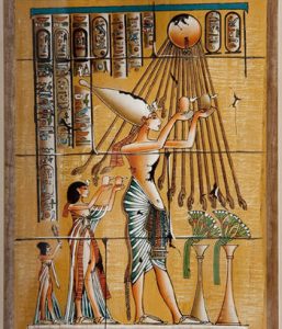 Náš příběh začíná v Egyptě, kde hieroglyfem královské rodiny je včela medonosná. Král Achnaton (vládl přibližně v letech 1353 až 1336 před naším letopočtem) byl „kacířský faraon,“ který prohlásil, že existuje pouze jeden Bůh, okřídlený sluneční kotouč „Aten.“ Kamenné rytiny zobrazovaly jeho královskou rodinu, která vystavovala svá polonahá těla a své jídlo a nápoje slunci. A sestupující paprsky přiváděly symbol klíče života (nilského kříže) přímo k jejich očím. Po Achnatonově smrti bylo jeho učení o uctívání slunce potlačeno politickými autoritami, ale stále bylo sdíleno v podzemí starověkými tajnými společnostmi, které přetrvávají dodnes.