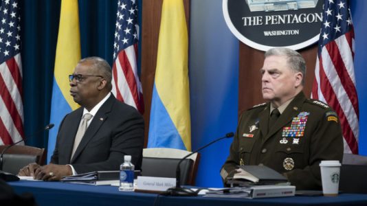 Pentagon obrátil ukrajinskou vlajku. Nejvyšší představitelé americké armády oznámili nové balíčky pomoci pro Ukrajinu pod vlajkou „neexistující země“.